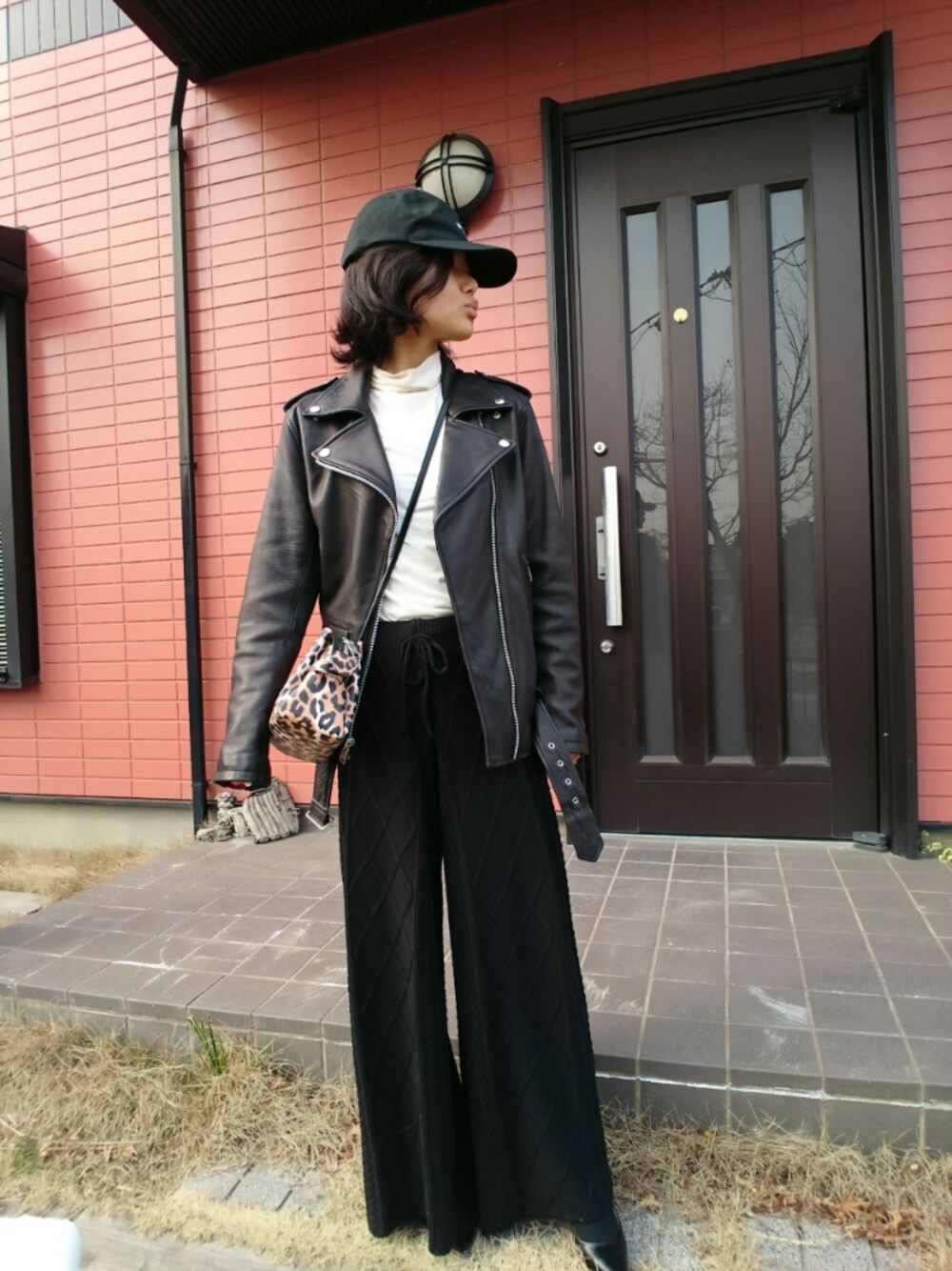 おでかけ。 ニットパンツをヒールで♪ モノトーンにレオパ♥️