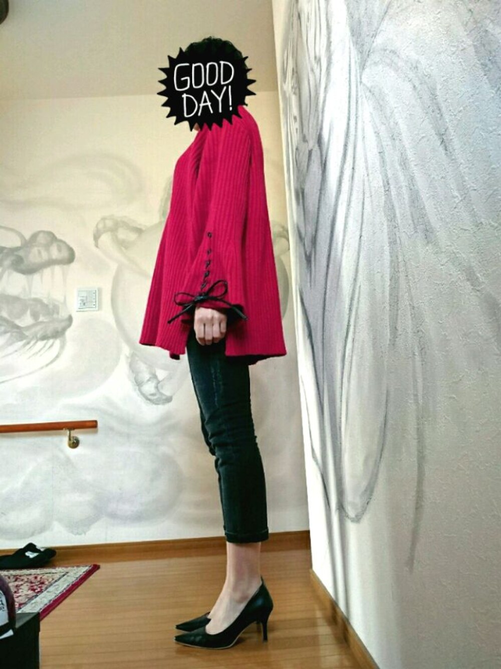 通勤コーデ。 赤knit♥×パンプスできれいめに。