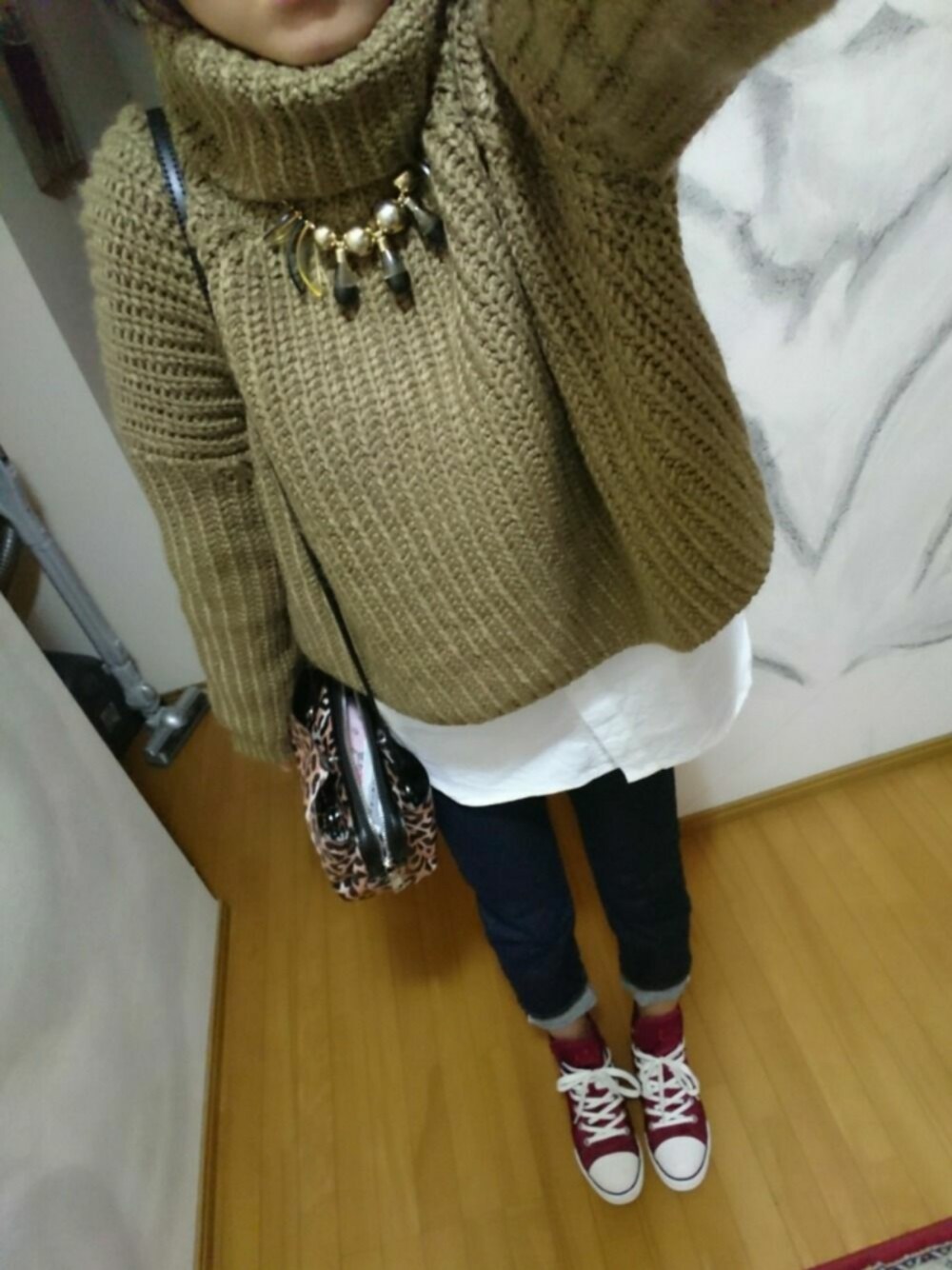 おでかけ。 忘年会♪ 駅まで歩くのでアウターは カーディガンだけでいけるくらい 着こんで防寒対策w knitは初おろし♥