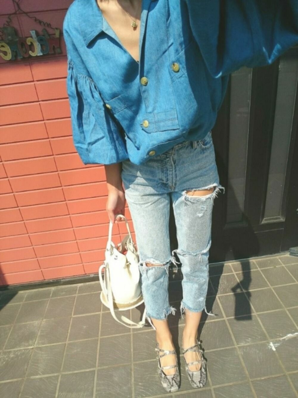 おでかけ。 おNew アイテムで組んだ♪ デニムとのワントーンコーデが今の気分です🙆♥️