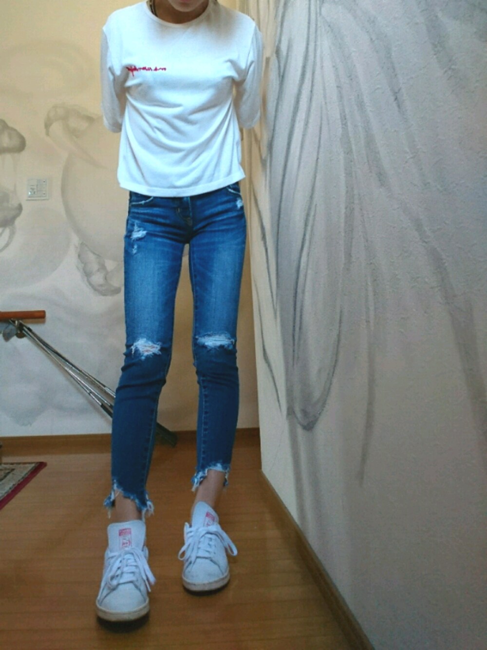 うまさんのデニムパンツ「fringe cropped Skinny4」を使ったコーディネート
