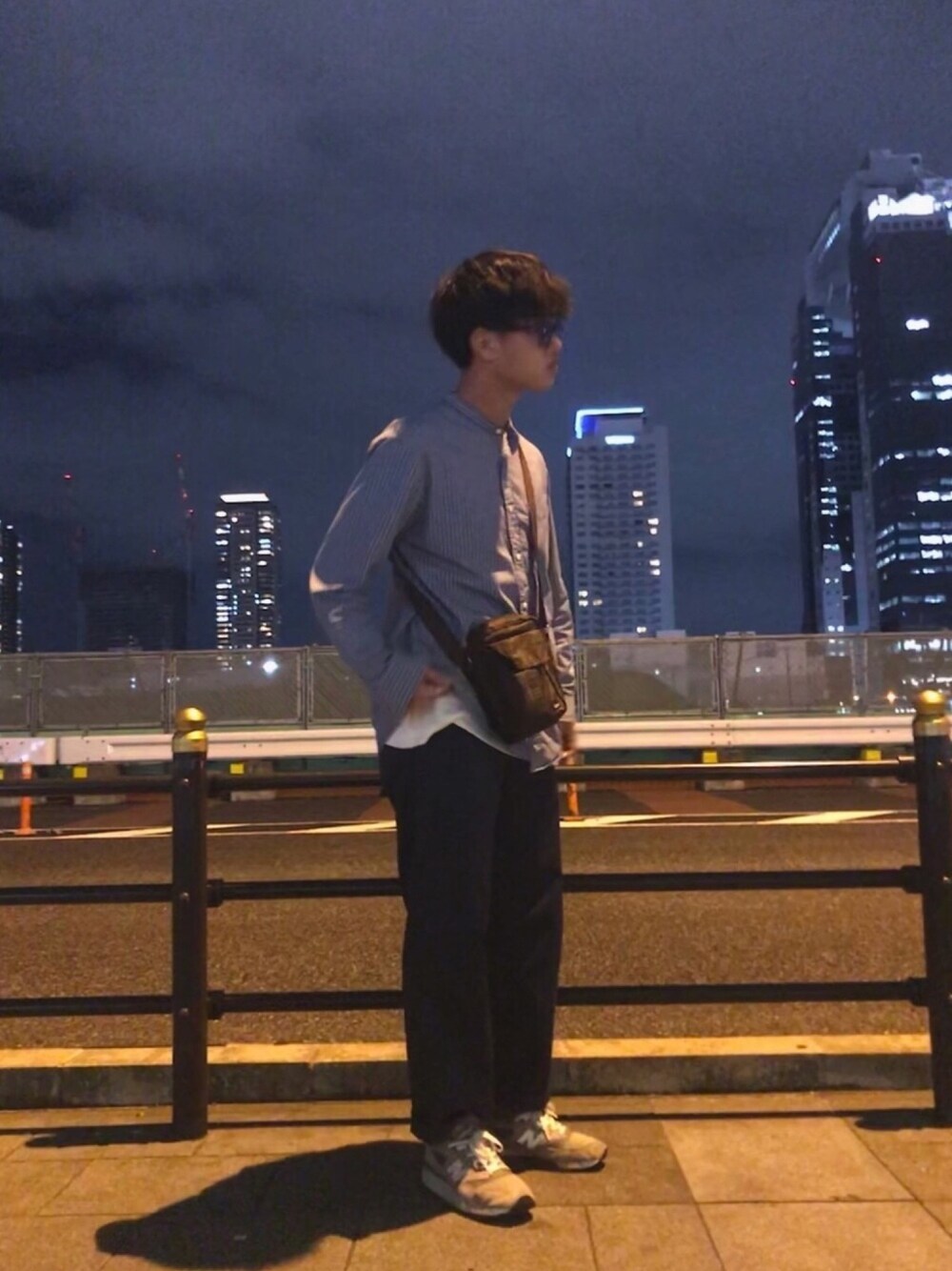 白インナーのチラ見せがよきまる◎ 夜なのにサングラスってどおなの笑 #ブルーコーデ #彼氏コーデ #彼女が勝手に彼氏のコーデあげてます