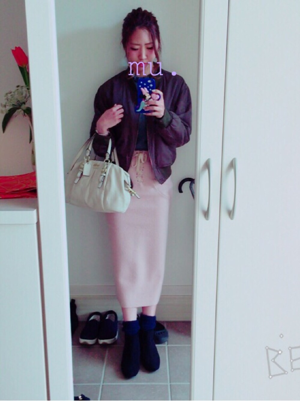 あけましておめでうございます😊🎍 今年一発目のコーデは ロングタイトスカートにMA-1を合わせました💕 このカーキとダスティーピンクの合わせ 個人的に好きです☺️💕 今年もたくさんの方のファッションを通じて 仲良くなれたらと思います💕 よろしくお願いします💕