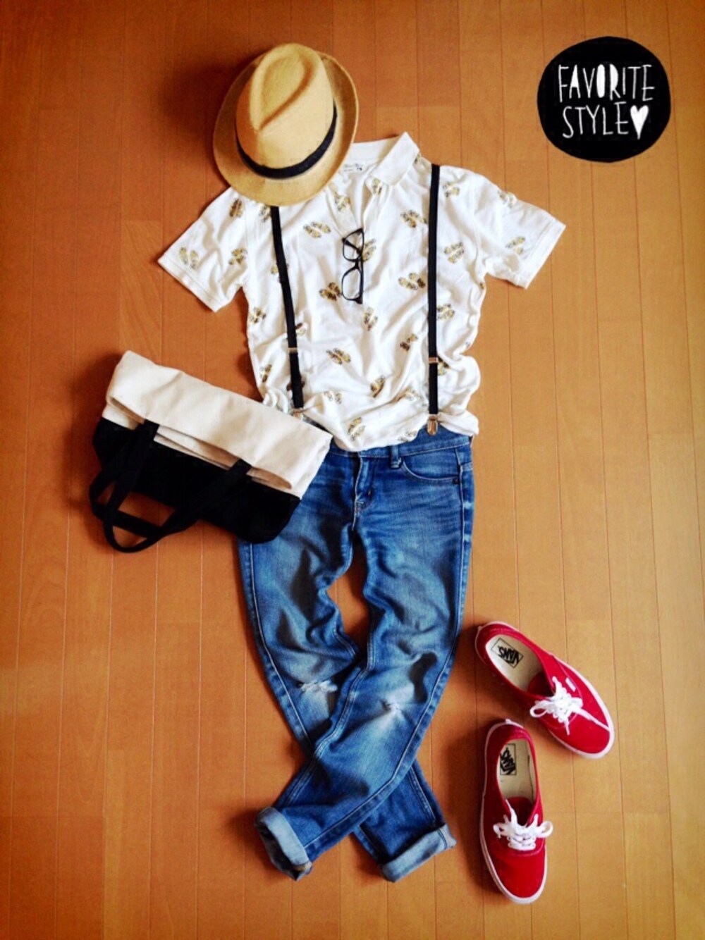 このポロシャツはメンズものだけどサンダル柄が可愛い♡ 連日同じハットが続いてますが、お気に入りなので新しいのを買う予定は無くしばらく続きますー( ›◡ु‹ )