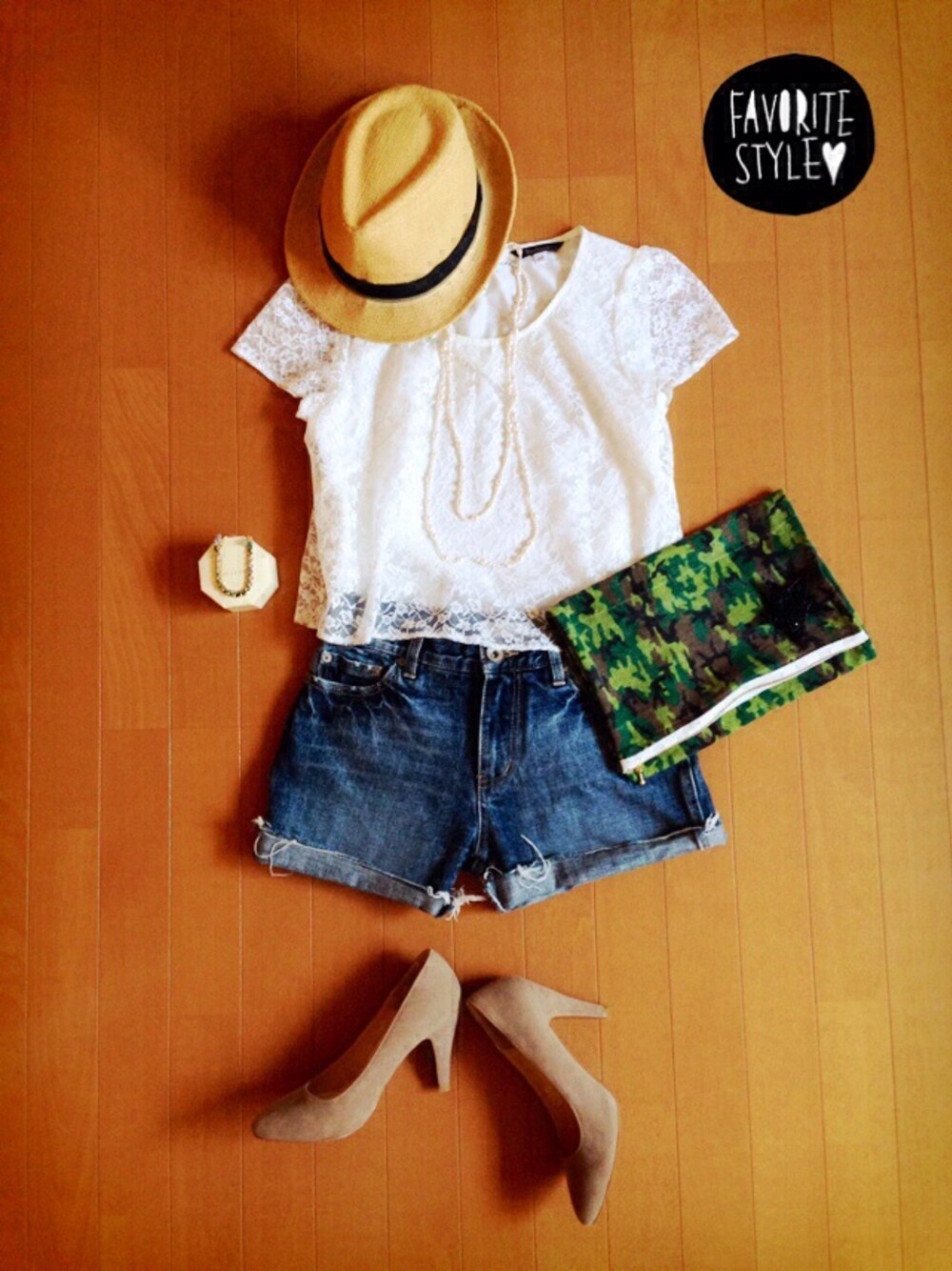 カジュアルだけどレースのトップスとヒールでパーティーっぽく…なってるかな(*ꆤ.̫ꆤ*)