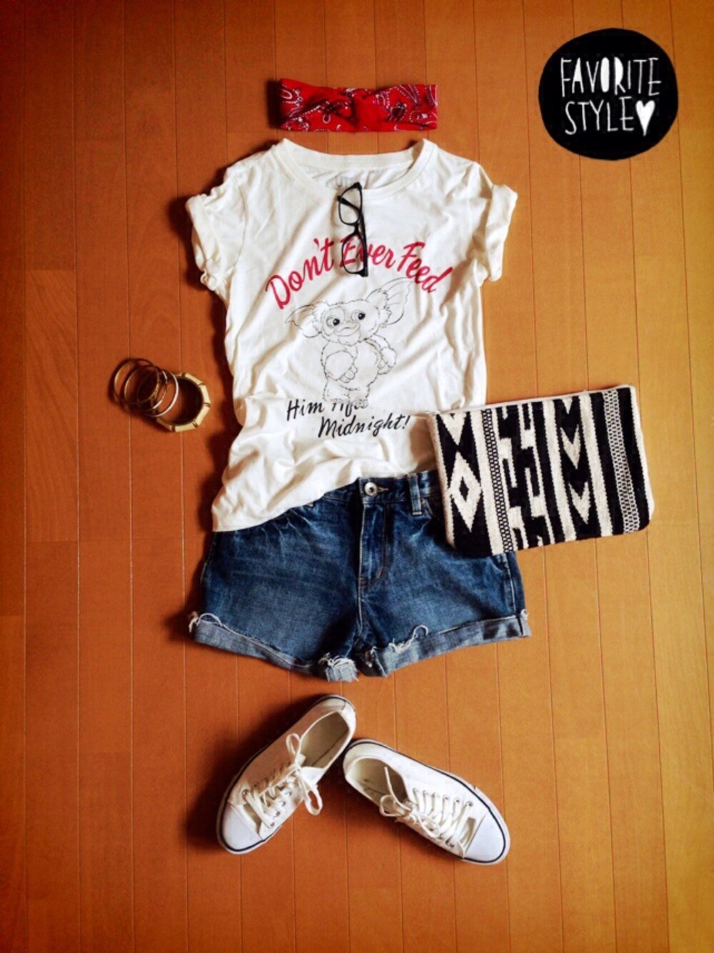 夏はこんな感じが好きです。 アイテム欄にあるティンカーベルのタンクは、数年前にHYSで働いていた友達にプレゼントしてもらったものです♡ ティンクが大好きで貰って嬉しかったけど、着ることが無かったので載せちゃいました(*´艸`)♡
