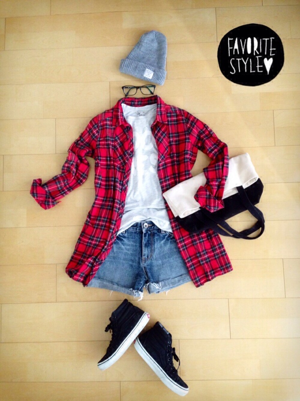 チェックシャツワンピにデニムの定番カジュアルスタイル☻