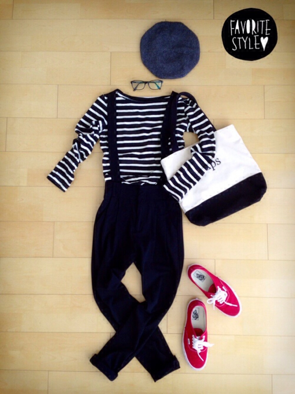 モコのトートバッグ「バイカラー エコバッグ(L)」を使ったコーディネート