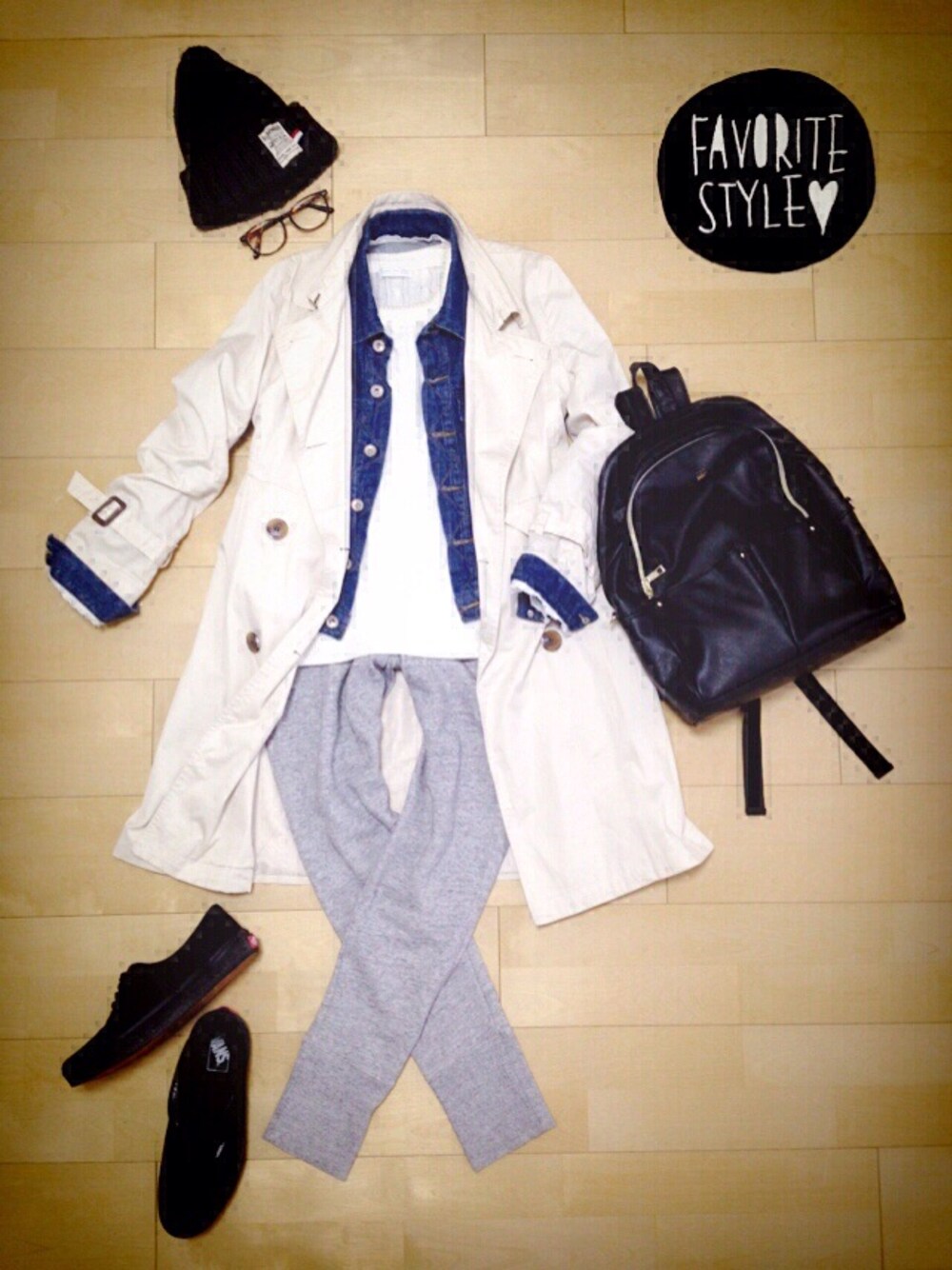 白ニットにスウェットパンツが好き◡̈♥︎ トレンチの色はキャメルにしたいけど持ってないので妄想で(ノ∀`笑)) いつもSAVE&FOLLOW&いいね!コメントありがとうございます(´•̥̥̥ω•̥̥̥`)♡