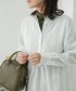 ピンタックの入ったチュニックシャツは コットンとレーヨン素材なので少しツヤ感もあり 通年使えるアイテム。 ノーカラーなので顔まわりもスッキリした印象にしてくれます。