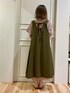 🍂🍁初秋コーデ🍁🍂 ピンクのシャツワンピにカーキのジャンパースカートを 合わせて縦長効果を意識しています🌱𓂃 𓈒𓏸 後ろリボンがかわいい⸜🎀⸝