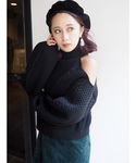 金澤 葵のニット/セーター「オープンショルダーケーブルニット」を使ったコーディネート