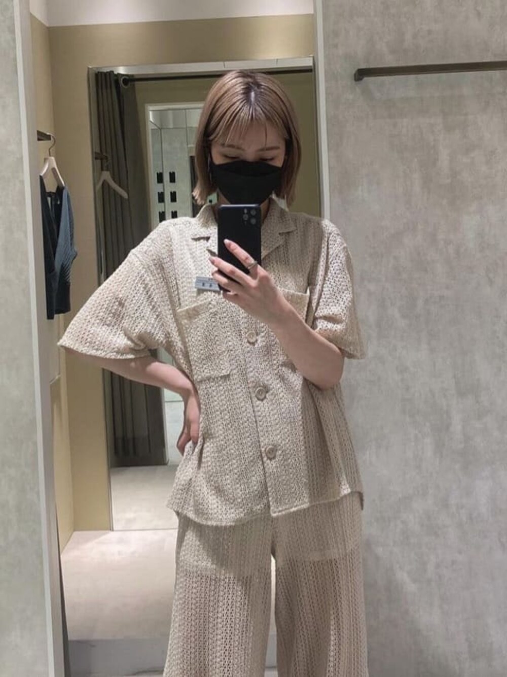 金澤 葵のシャツ/ブラウス「メッシュオープンカラーシャツ【セットアップ着用可】」を使ったコーディネート