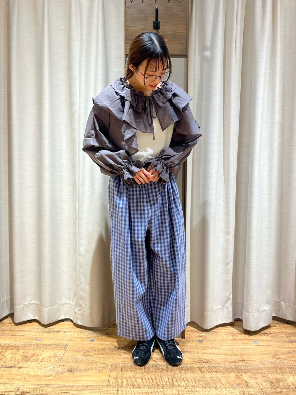 ご覧いただきありがとうございます🪿 SM2の羽織レースフリルブラウスを着てみました! 丈が短めなのでボリューム感がありながら、すっきりと着ることができます◎