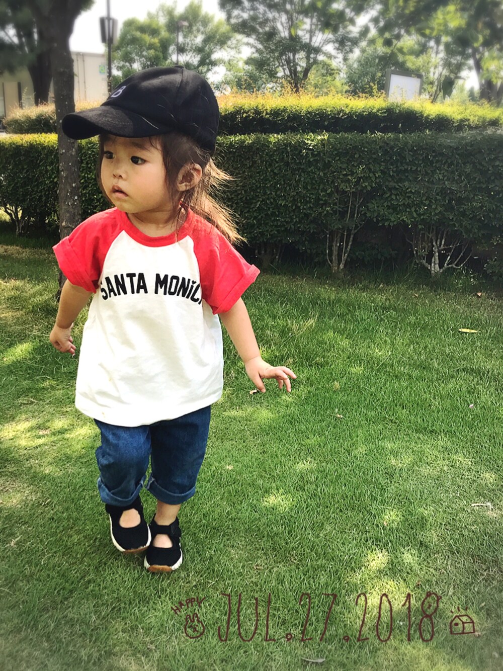 噴水の出る公園へ~♫ ビショビショになる前提で 着替えやオムツ持ってたのに 挙動不審でまわりをキョロキョロ してるだけ👀💦 ビビって入れず... 公園のすみにあるチョロチョロ出る 水道で遊んでるだけでした꒰꒪꒫꒪⌯꒱ もぉ少し大きくなったらリベンジ‼︎ コーデはラグランで袖が少し フレアになっててめずらしー‼︎ と思って購入したやつ♥︎