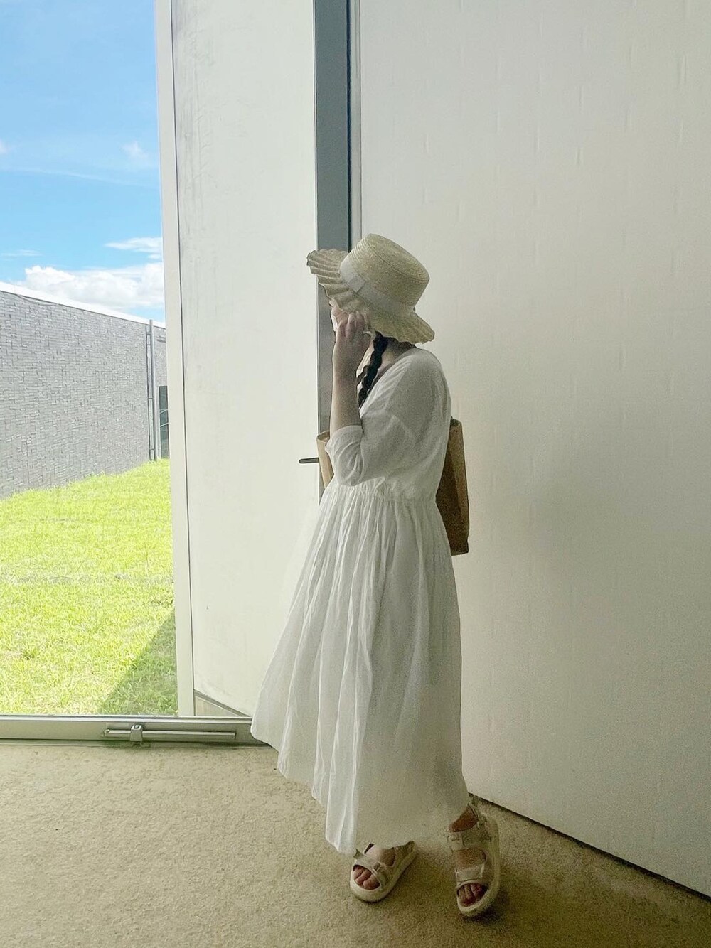 なみなみカンカン帽子🌻 白のワンピースで合わせました𓂃𓈒𓏸 ウエストが絞れるのでスタイルが良く見えます☺︎