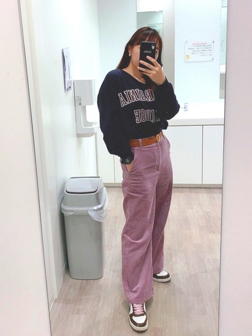 前の投稿の全身版です☺︎ 今日持っていたリュックは前投稿に載せました👌 相変わらずの後ろゴミ箱スタイル