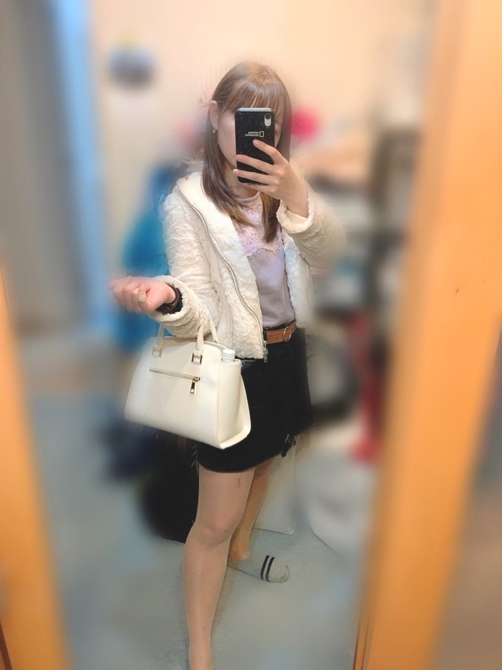 今日の大学コーデ☺︎ 外で取れなかったから靴履いてないけど 黒のショートブーツでした いつもとちょっと違う雰囲気❤︎ ストッキング足ゲキモレ