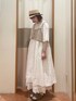 前回のコーディネートに新作のビスチェをプラスしました🥨 ビスチェはスタイルアップ効果抜群で、ワンピースと合わせるとメリハリが出ます◎ 透かし編みとボタンがアクセントになり可愛いです☺︎