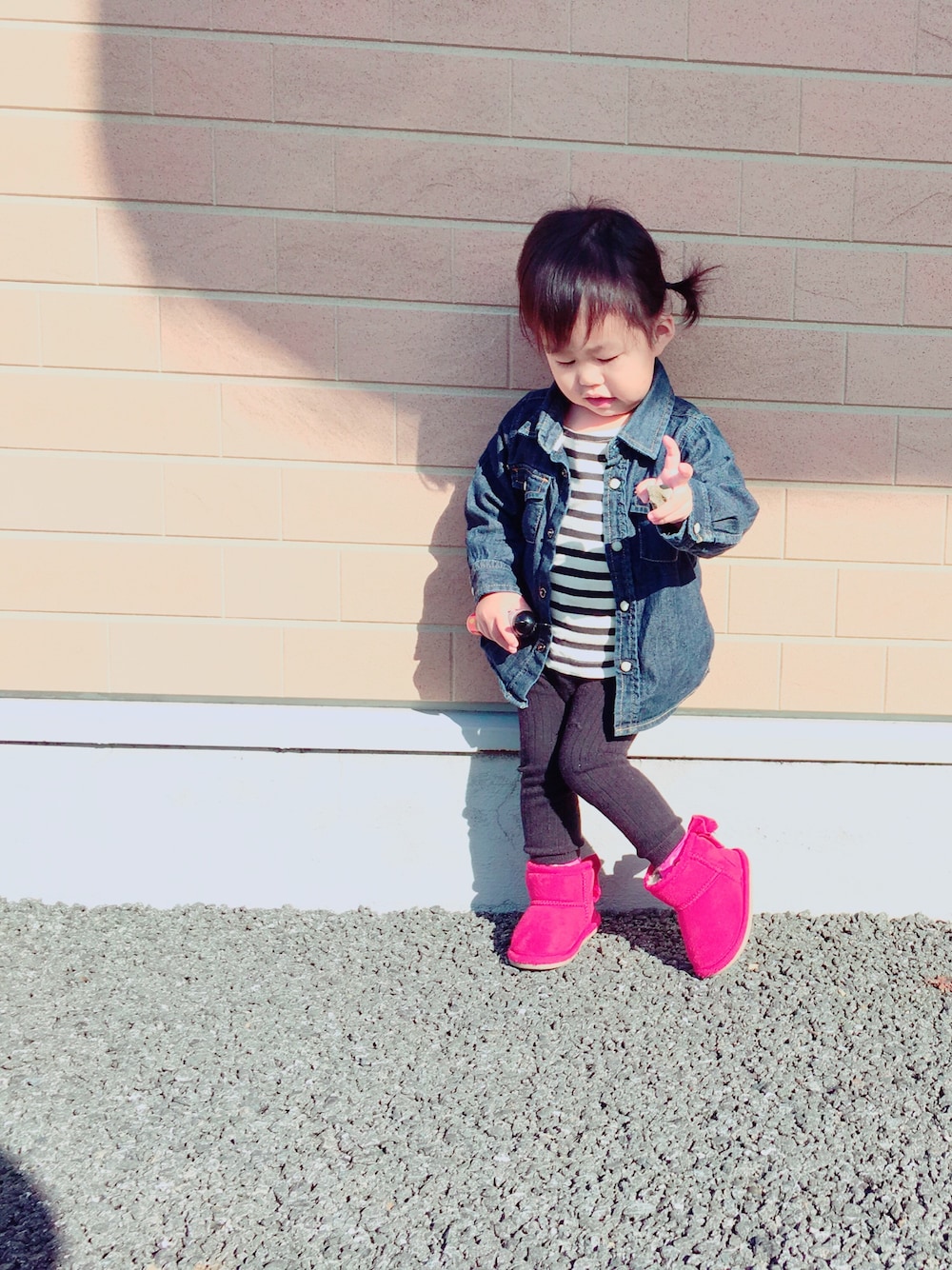 ブラック系のTシャツ/カットソー、ブルー系のシャツ/ブラウスを着用したキッズの秋コーディネートの1枚目の写真
