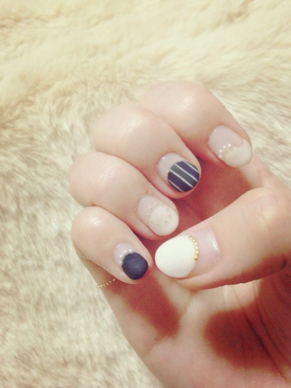 前回に続き、マットネイルにハマってます。 ストライプのスカート、白ニット、アクセサリーはパールとゴールド、というイメージ。