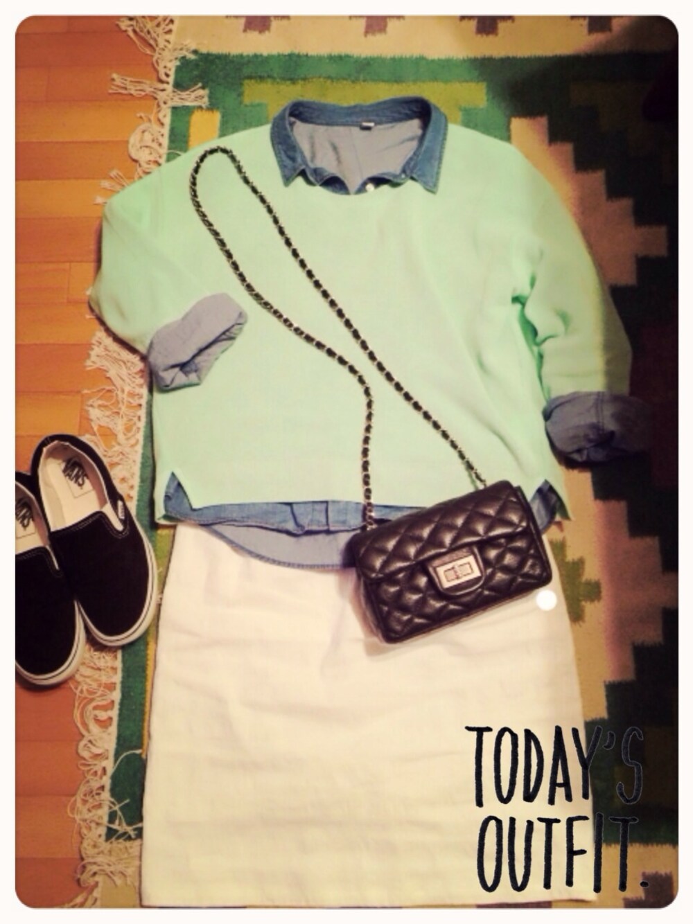 シャツ:UNIQLO ニット:アナザーエディション スカート:as know as スニーカー:VANS バック:dholc + トレンチコート (๑′ᴗ‵๑) 初投稿♡