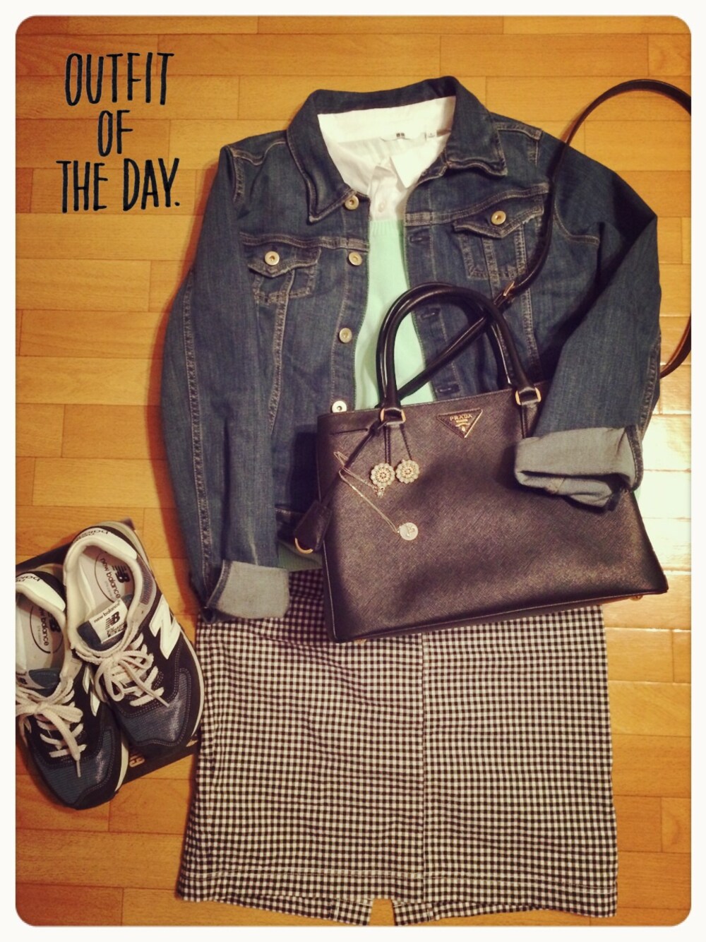 Gジャン:H&M シャツ:UNIQLO ニット:アナザーエディション スカート:アーバンリサーチドアーズ スニーカー:ニューバランス バック:PRADA 久々♡ 札幌もようやく春です(๑′ᴗ‵๑)