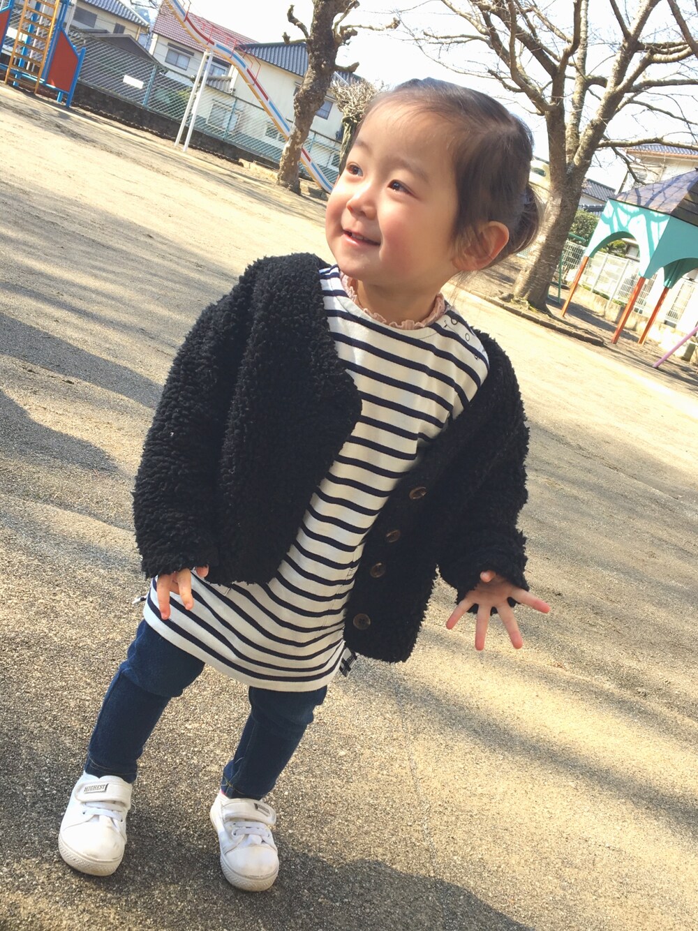今日はネェネの幼稚園の新しい園舎の 餅まき🤗 まだまだ田舎ではやっています‥ 親子参加もできたので行ってきました🐽 ワンピは90 2歳になりだいたい90がおもになってきましたが♡ 首回りが広くないデザインのものは100を着たりします😌 パンツ👖はサイズをあげるとウエスト 周りが大きくなり動きにくくなるので 柔らかめな生地感ジャストサイズを買うようにしています♡ ネェネは4歳なのでスキニーなどピチピチも♡