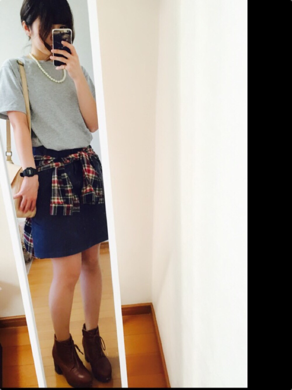 昼と夕方からの温度差に秋を感じます🍁 シャツとスカートはアウトレットで購入しました◎ TシャツはUNIQLOのパックTです。 ブーツは普段スニーカーばかりの私でもとっても履きやすいのでおすすめです☻
