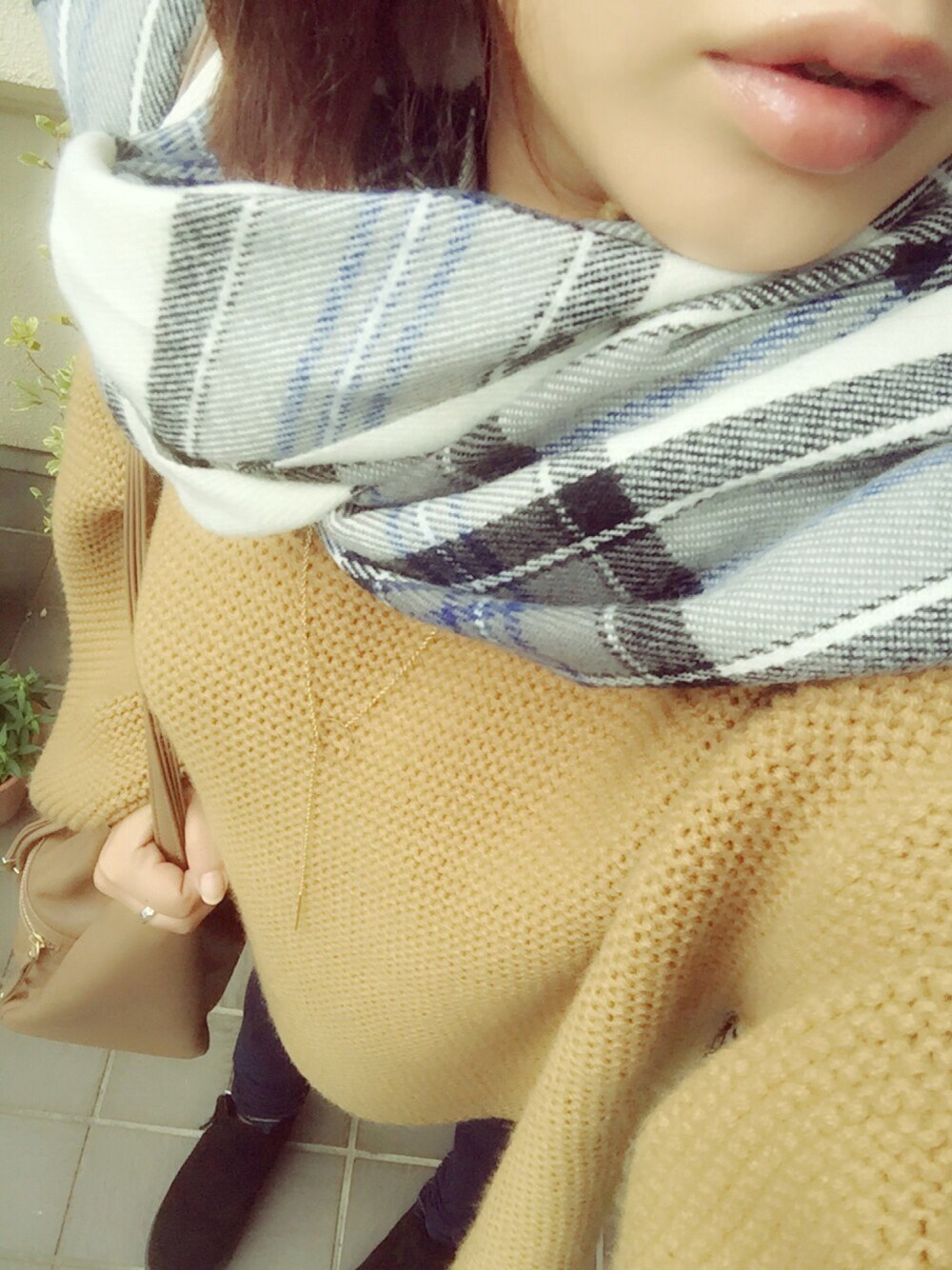 Ayajiのストール/ショール「チェックガラストール 551644」を使ったコーディネート