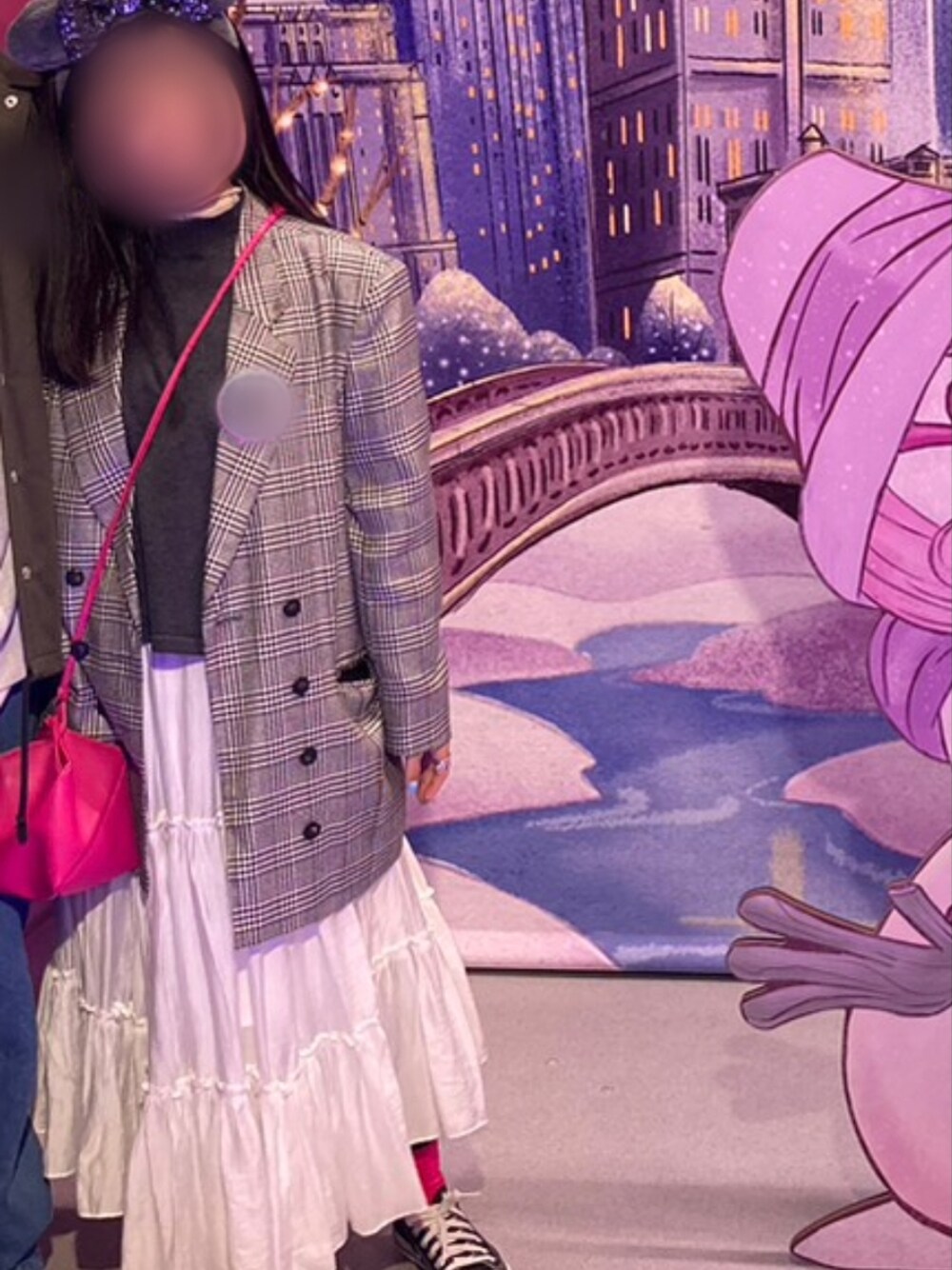 靴下とバックでビンク パートナーはシャツがピンク インナーにシアートップス着てる