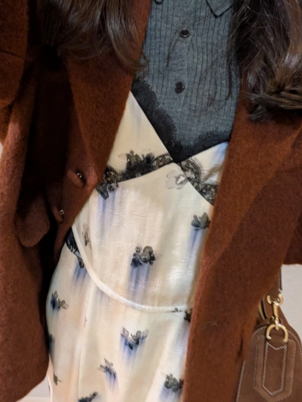 グレー×ブラウンがきてる ニットポロはUNIQLO