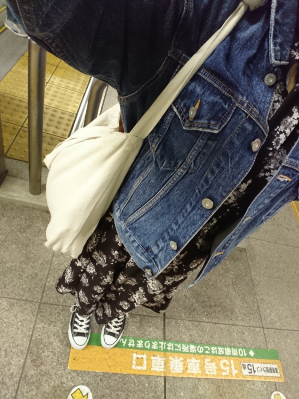 このコーデに黒のキャップ! 花柄ワンピースにキャップ、コンバース、Gジャンでいつもみたいにメンズライクに✌️
