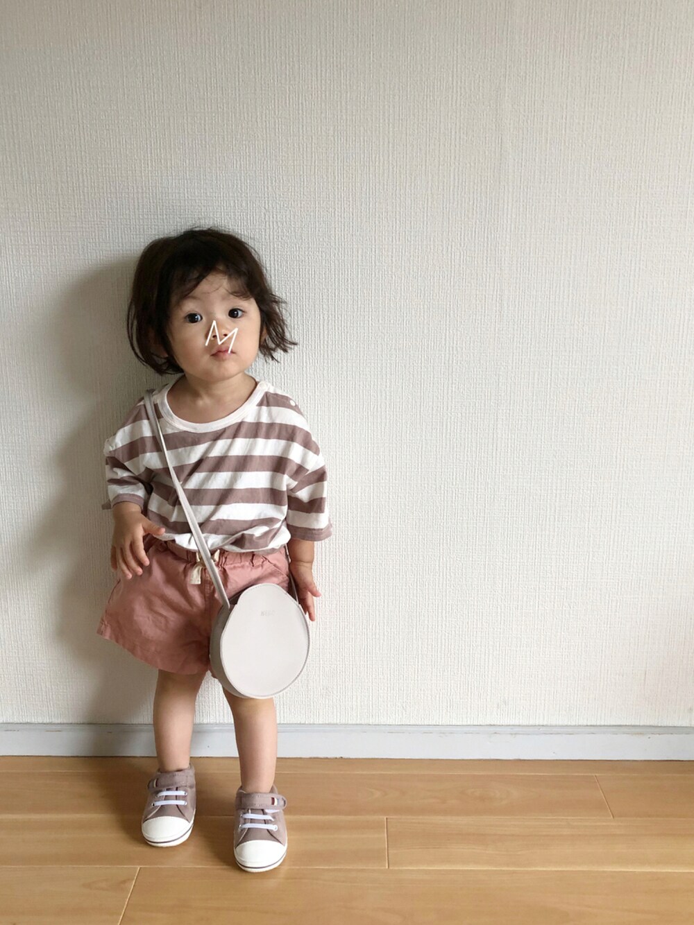 お越しいただきありがとうございます♡ #ボーダー お気に入りTシャツで♩ 娘の顔が顔文字だと思った とりためこーで(๑❛ з❛๑)←コレ 1y9m▶︎76.5cm/8.9kg tops 90