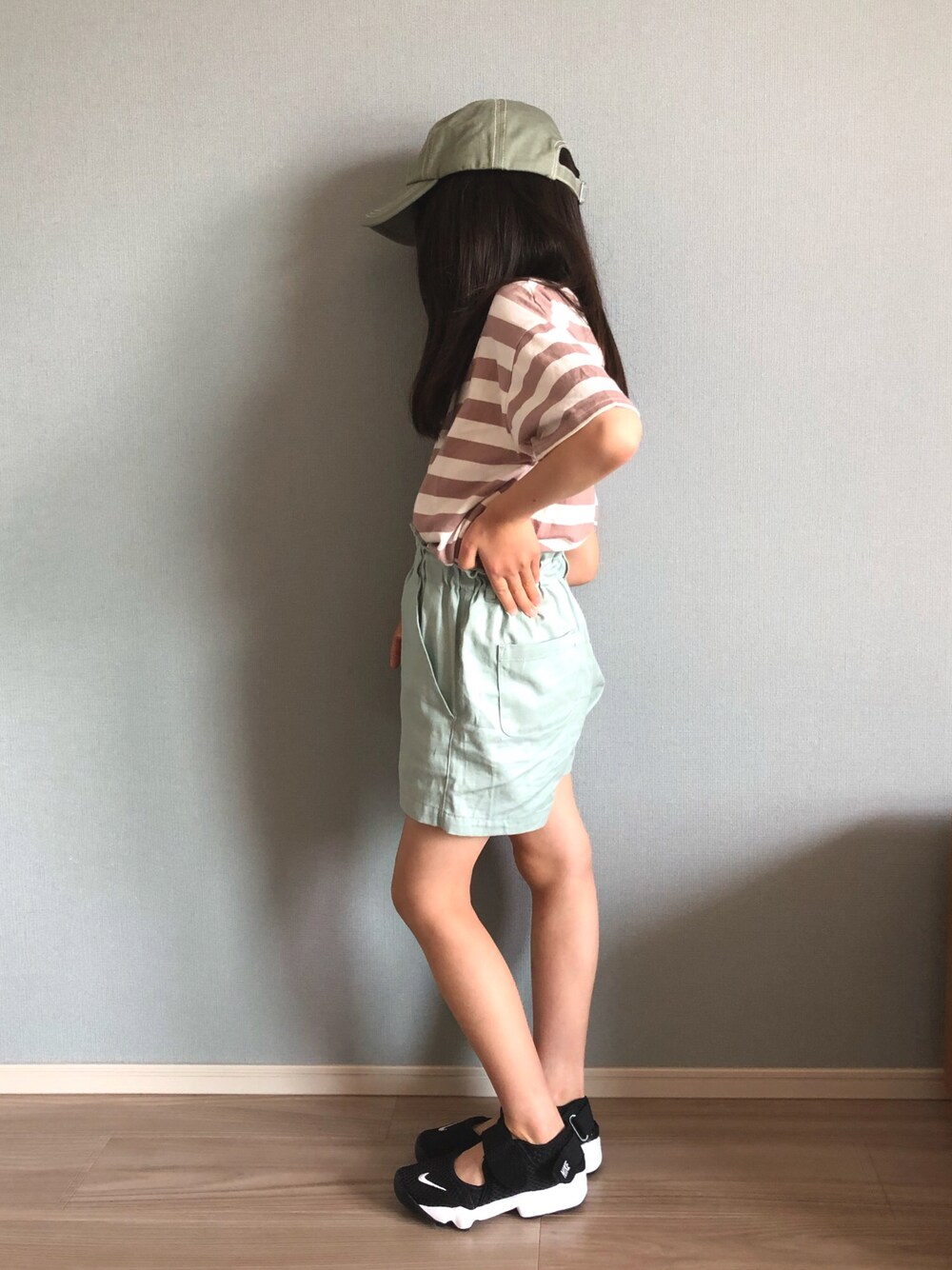 お越しいただきありがとうございます♡ #グリーン 🆕ショートパンツ ショーパン好き💚 今年の一着目は先日のクーポンで💚💚 グリーンのキャップと合わせました♩ 6y9m▶︎120.7cm/21.3kg