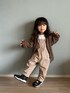 お越しいただきありがとうございます♡ 茶色もこもこコーデ🤎 このサロペは 横からのシルエットがほんとにかわいい。 2枚目載せました。 アウター着てるからあまり伝わらないけど← ついでに、最近毎日家中散歩させまくってる モグリンとの写真も3枚目に🤣 えむさん、結膜炎。 一週間登園禁止だって。 まじかい…