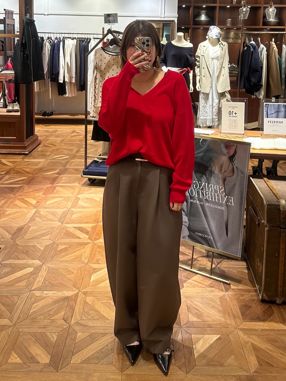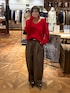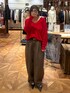 すっきり見えのVニット。 赤はアウターの中の差し色などに使っても おすすめです!