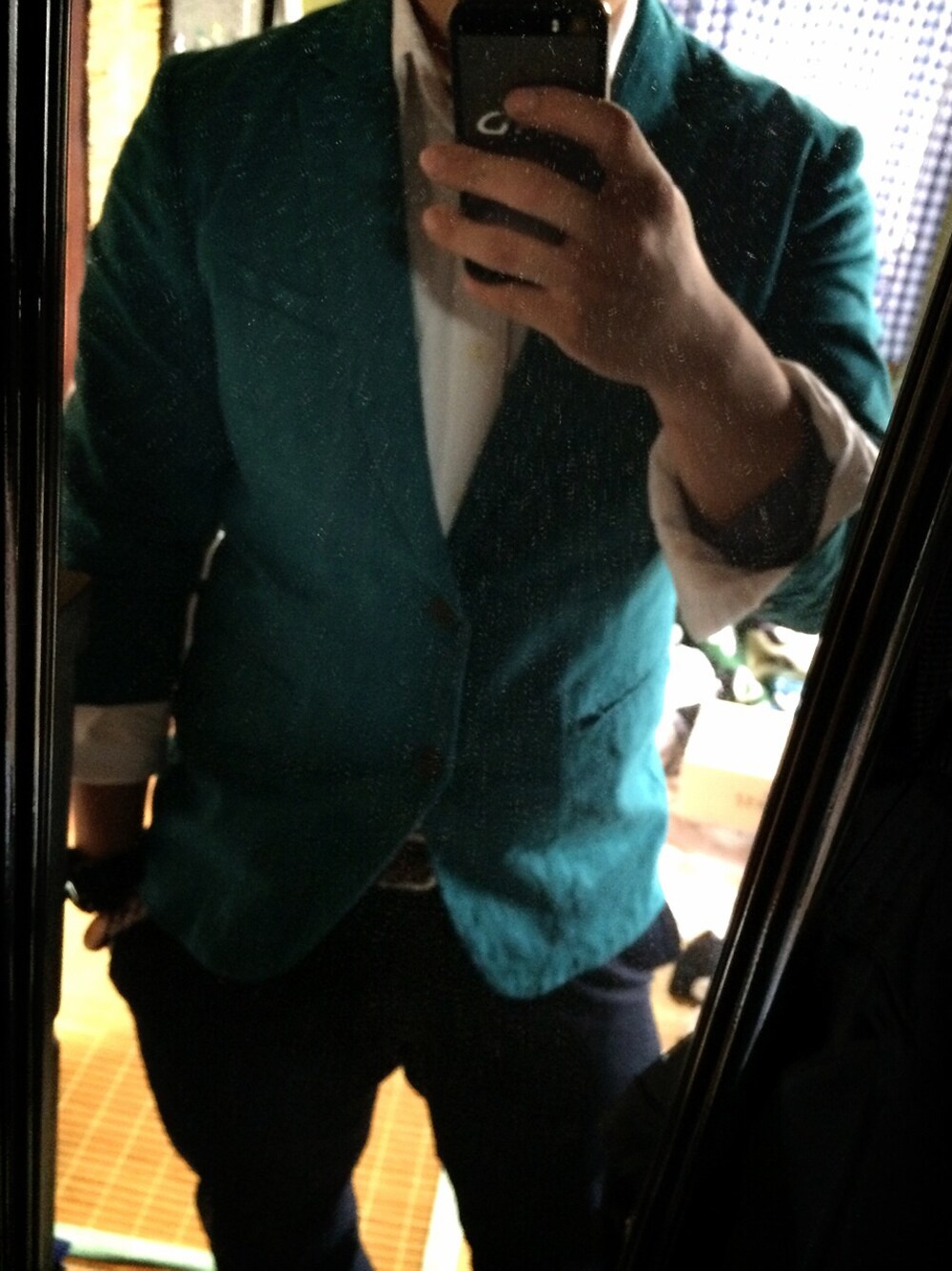 ジャケット 七分 白シャツ 黒ズボン