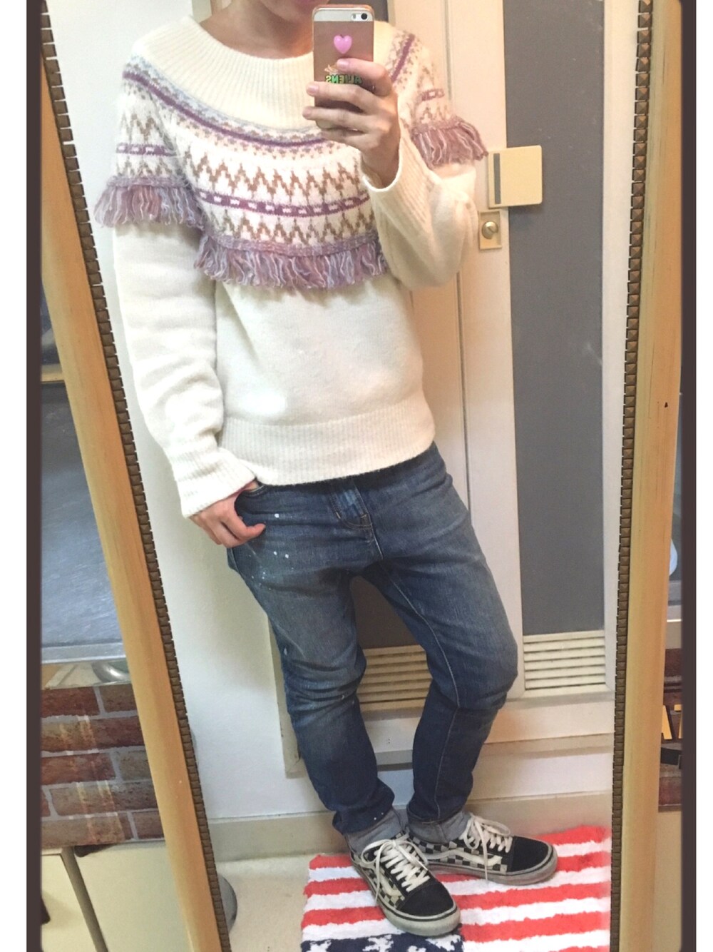 A娘のニット/セーター「球芯柄フリンジプルオーバー」を使ったコーディネート