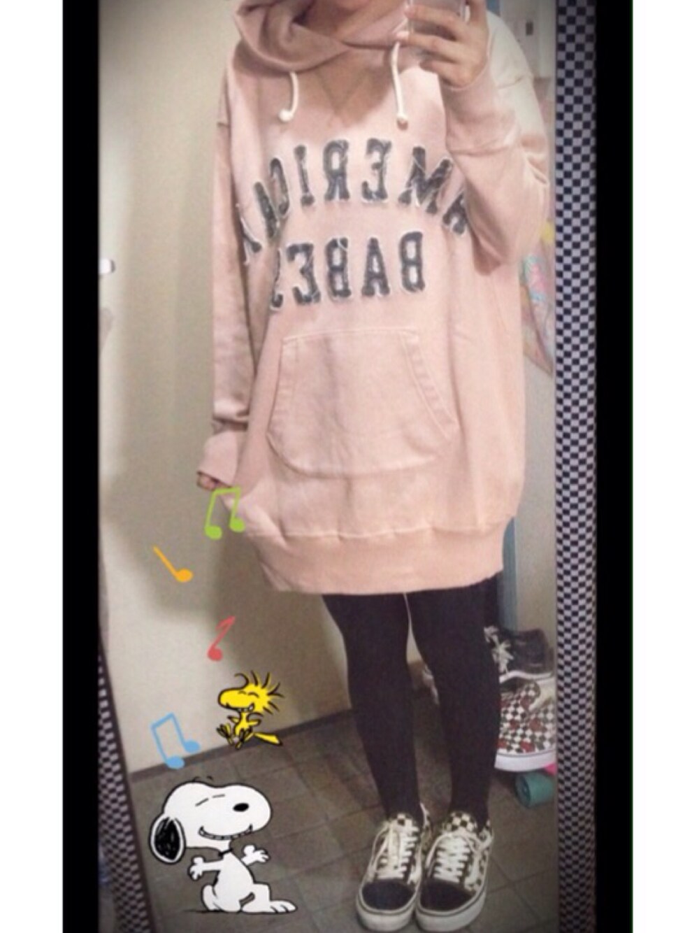 ファミリーセールで買ったパーカーワンピ!高くて諦めてたやつ! 薄いピンク色、丈、ちょっとダメージ加工、全てがgood♪
