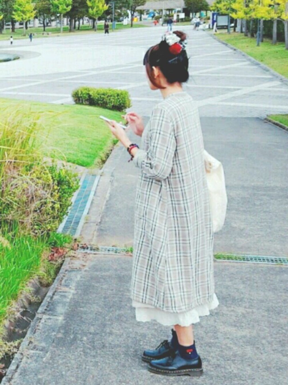 ワンピースの裾から ちらりと見えるスカートが お気に入りなコーデ。 ハンドメイドのシュシュで 目線を上に…◎