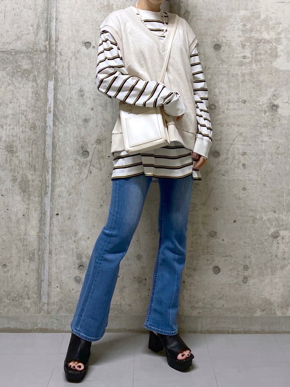 staffboard ▶︎あやぱんで検索 【カジュアルコーデ】 --リアルバイコーデ-- ロンTはベストとレイヤードするのが好き◎ 裏毛ベストは一枚持っておくと、これからの季節に大活躍間違いなしのアイテム◎ 程よい厚さなので、今はタンクトップやTシャツ合わせがおすすめです! 涼しくなってきたらロンTやシャツとレイヤードできちゃいますよ!! シンプルにデニム合わせでもオシャレ度UPです♡