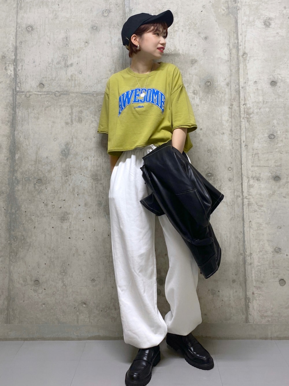 staff board ▶︎あやぱんで検索 ゆるっとパンツ×ショート丈Tシャツでバランスよく、スポーティーなコーデに♩¨̮⑅*
