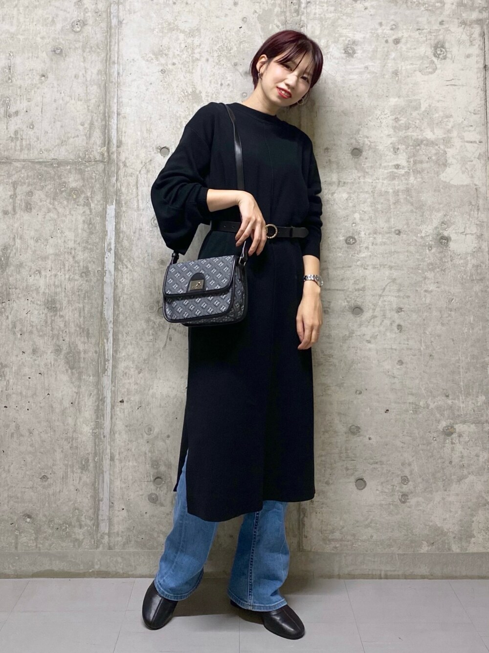 【大人カジュアルコーデ】 ワンピースとデニムのレイヤードスタイル。 シンプルコーデに小物でアレンジを効かせてワンランク上に見えるコーデにしました◎