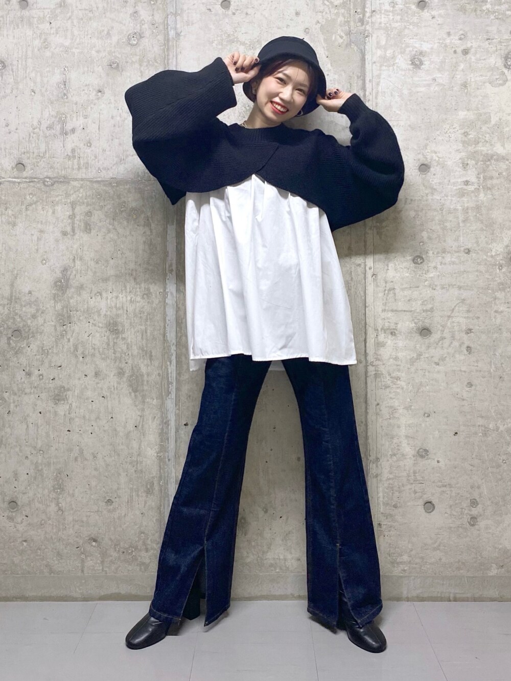 tagochi(PAGEBOY梅田HEPFIVE店)のデニムパンツ「フロントスリットジーンズ (フレアデニム)」を使ったコーディネート