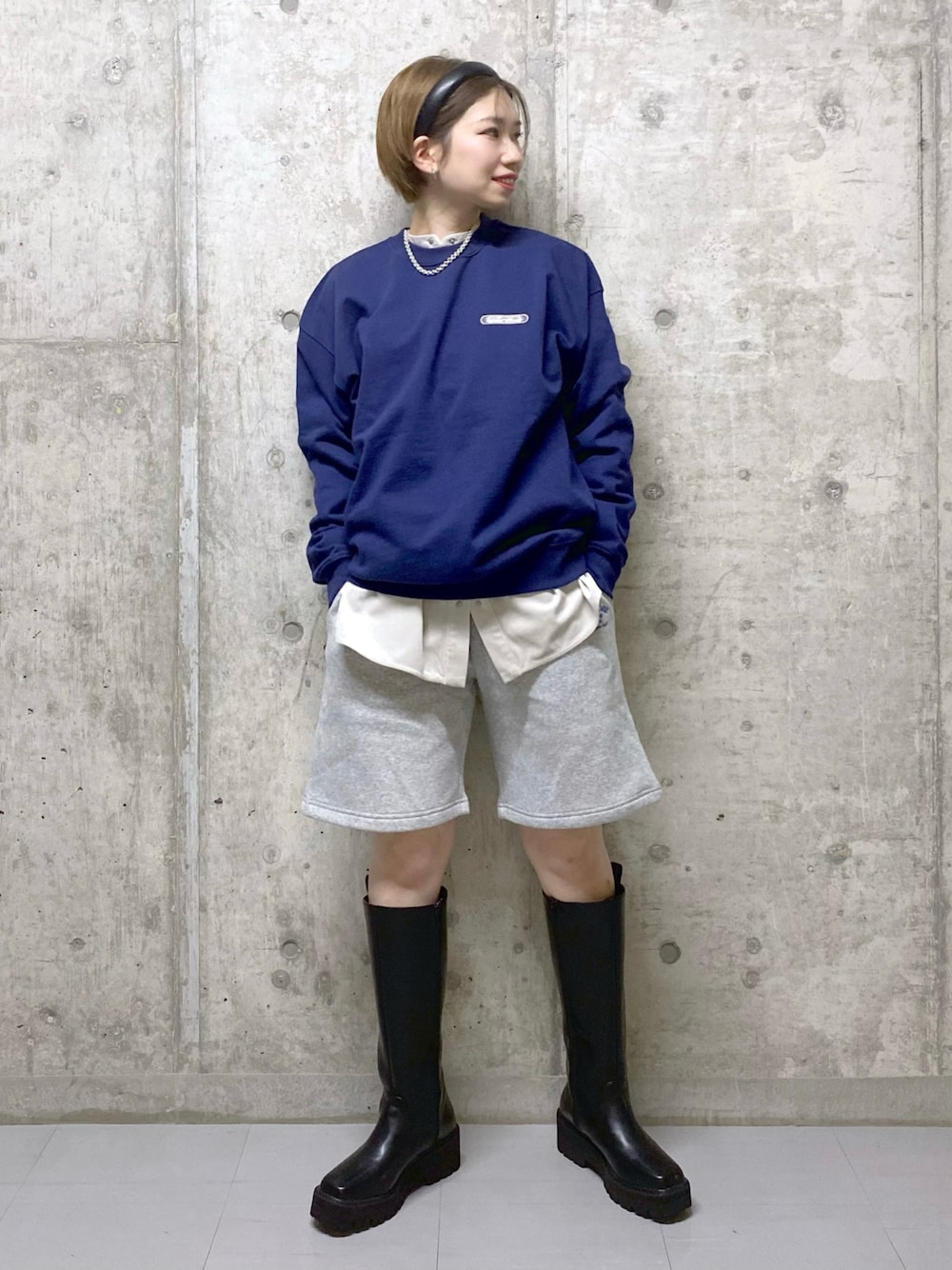 スウェットショートパンツのオススメコーデ。 スウェット×シャツをレイヤードしてラフでお洒落に仕上げました◎