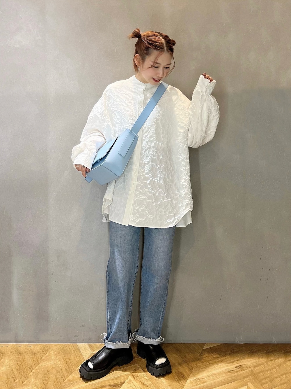 tagochi(PAGEBOY梅田HEPFIVE店)のデニムパンツ「【eL】Highrise Straight Denim Pants/344258」を使ったコーディネート