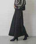 ブルーとチャコールのスカートで落ち着いた雰囲気に