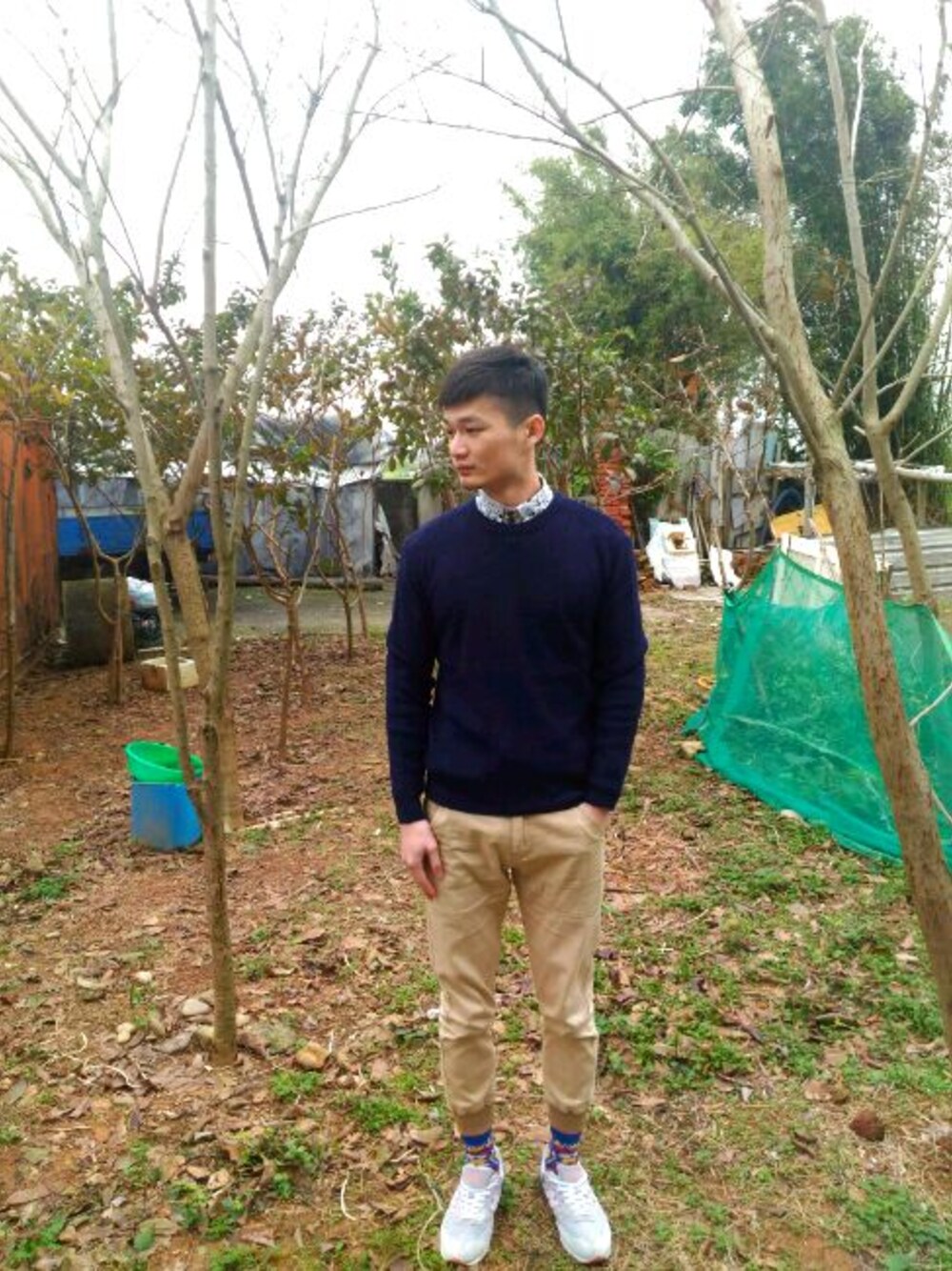 素色毛衣配上花襯衫,讓上身有焦點 配上流行的縮口褲,襪子選擇藍色印花 與深藍毛衣,花襯衫首尾呼應 素色外衣配上印花系列,給想要低調又想有點花樣的人參考