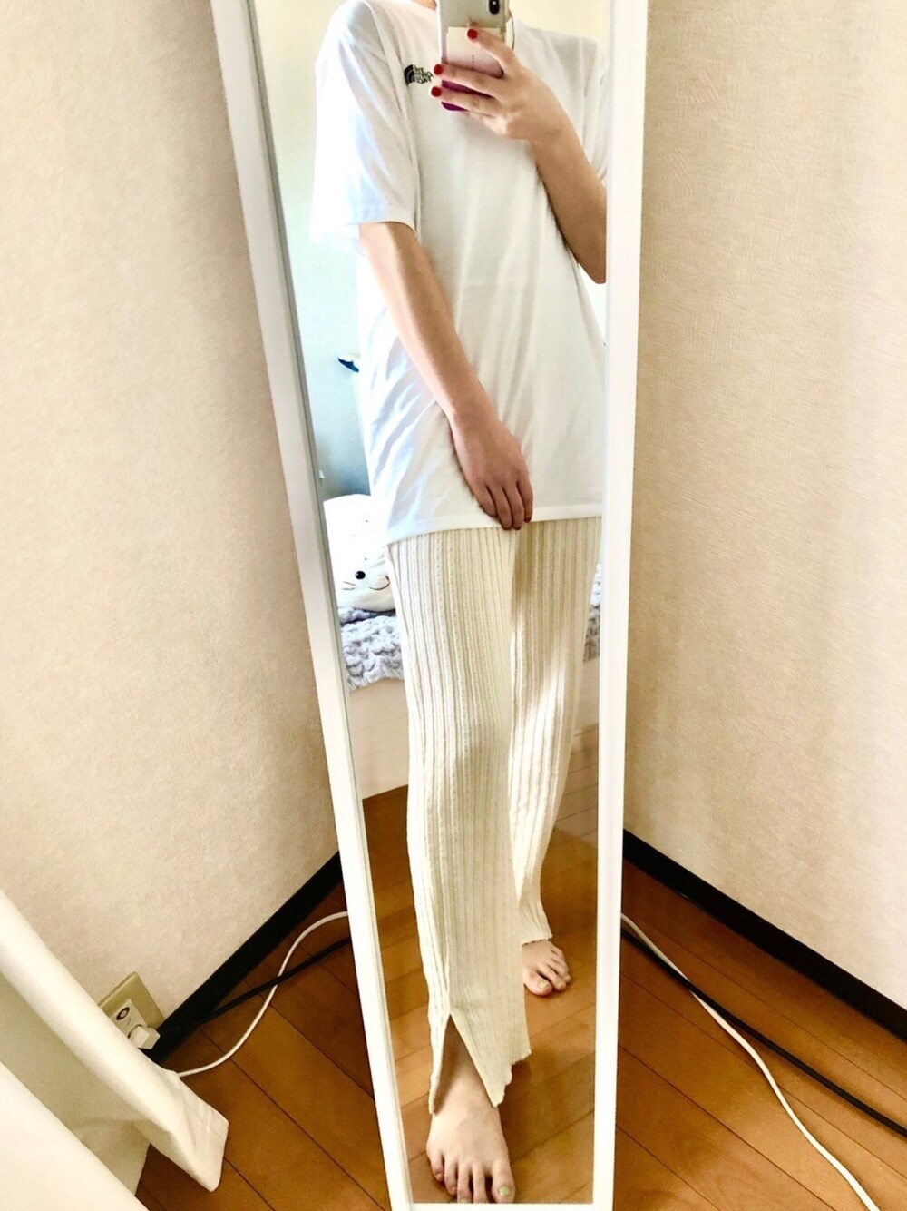 今日のコーデ☺︎ このリブニットパンツ足長く見えて夏でも履きやすい生地で優秀すぎる✨